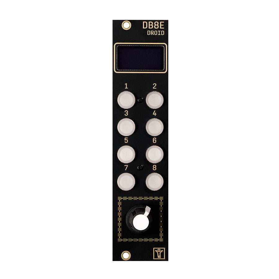 In addition, you can use the buttons and the encoder as regular controls in your patch. The DB8E is a great choice if it is your first or your only controller. With the buttons it is possible to "overlay" the encoder with various functions, so you are not limited to controlling just one parameter. Also you can inspect values throughout your system using the display.