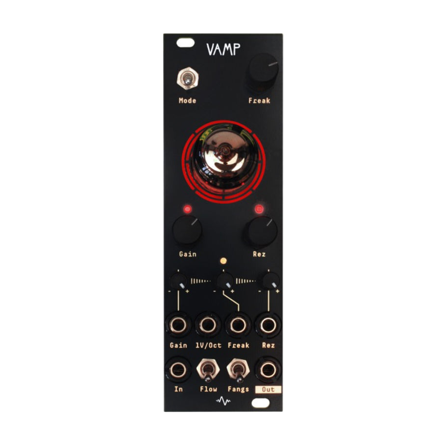 One half of the tube is used to saturate the input, while the other half powers the resonance feedback path with an MS-20-style clipping stage. Combined with assignable VCA placement (pre- or post-filter) and a dedicated output clipping circuit, VAMP delivers everything from subtle warmth to ferocious harmonic destruction.