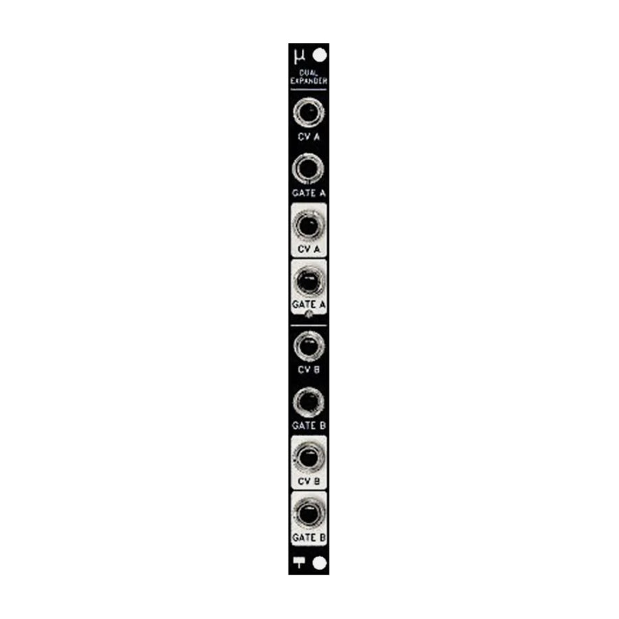 This expander adds two additional channels to µTune. Each channel has a CV-in, GATE/FREQ-in, CV-out and GATE-out. Functions for each output can be assigned freely.