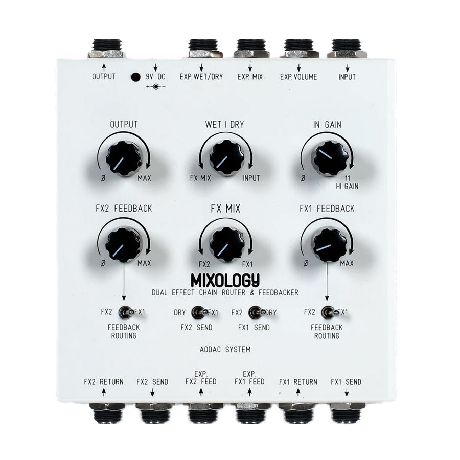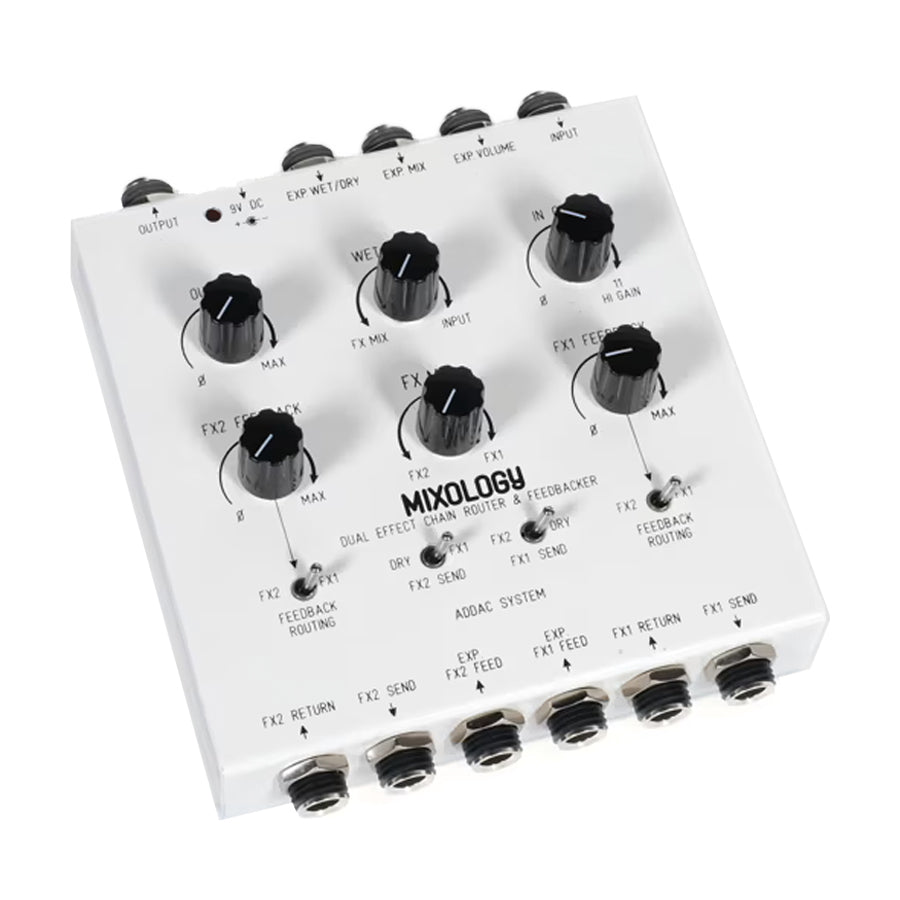 The Mixology pedal brings unconventional and powerful capabilities into the world of pedals, enabling guitarists, synthesists, and other musicians to extend their creativity and achieve new FX routing possibilities. The new pedal is a dual effect chain router and feedbacker with a host of control options, opening an entirely new spectrum of mixing configurations.