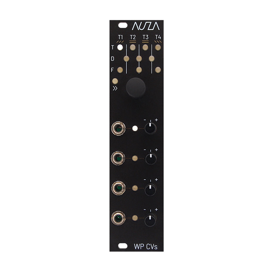 WP CVs is an expander module for Wave Packets that significantly enhances CV control. It provides CV inputs, which can be assigned to various parameters using the LED matrix. With a many-to-many mapping approach, each CV can control one or multiple parameters, and each parameter can receive input from one or multiple CVs.
