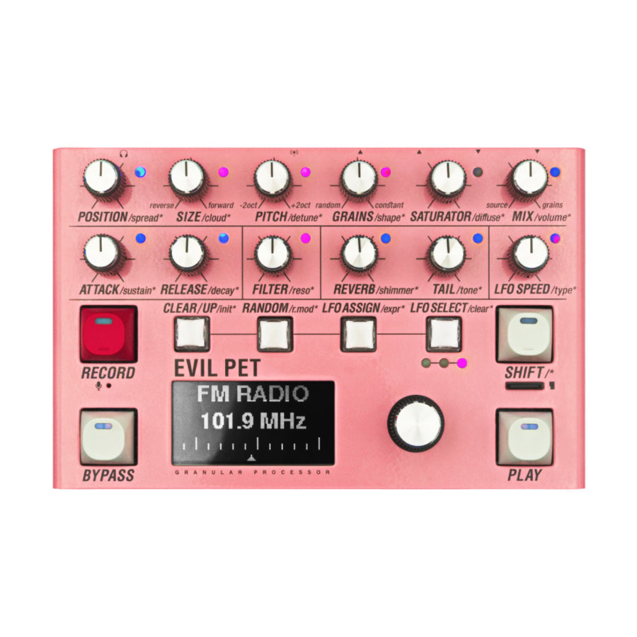 EVIL PET bites incoming audio into tiny grains and plays them in new, playful, or unexpected ways. Stretch, shrink, or flip the grains to create unique sounds, textures, and effects. Layer grains to make dreamy, glitchy, or swirling soundscapes. It works with any input - guitar, voice, synth, or drums - turning ordinary sounds into something magical.