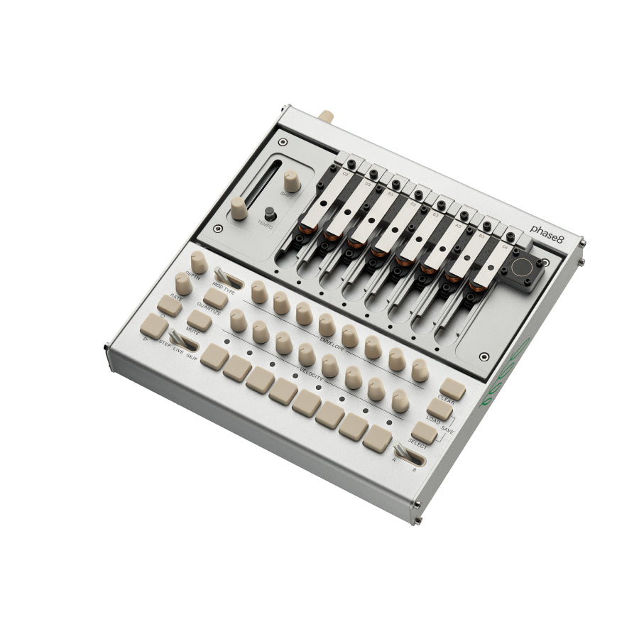 The design allows you to easily swap and tune resonators, letting you customise the scale and character of your phase8.